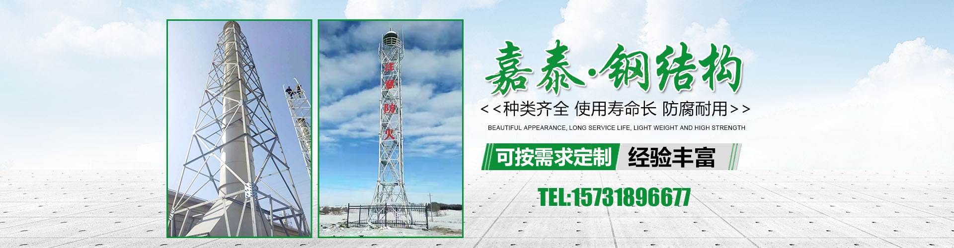 衡水嘉泰鋼結(jié)構(gòu)有限公司位于鐵塔制造之鄉(xiāng)-衡水市景縣廣川經(jīng)濟(jì)開發(fā)區(qū),石德、京九鐵路交匯處,距北京、天津、石家莊、濟(jì)南均在2小 時交通圈內(nèi),交通便利。公司主要產(chǎn)品有:避雷塔、監(jiān)控塔、瞭望塔、消防訓(xùn)練塔、電力架構(gòu)、樓頂工藝塔、廣播電視塔、煙囪塔、測風(fēng)塔 、電力塔、單管塔、雷達(dá)塔、仿生樹塔、氣象觀測塔、路燈桿,一體化基站、ETC龍門架等,是一家集設(shè)計,生產(chǎn),運輸,安裝,維護(hù)為一體的廠家。主要服務(wù)于鐵塔公司、通信三大運營商、國防通訊,鐵路及森 ......